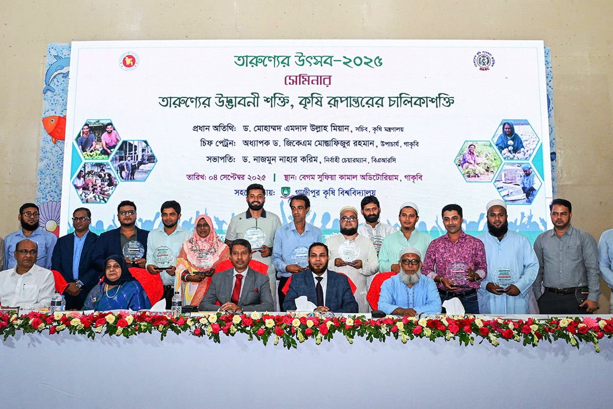 বাংলাদেশ কৃষি গবেষণা কাউন্সিলের (বিএআরসি) উদ্যোগে এবং গাজীপুর কৃষি বিশ্ববিদ্যালয়ের (গাকৃবি) সার্বিক সহযোগিতায় বৃহস্পতিবার (৪ সেপ্টেম্বর) বিশ্ববিদ্যালয়ের বেগম সুফিয়া কামাল অডিটোরিয়ামে অনুষ্ঠিত হয়েছে দিনব্যাপী ‘তারুণ্যের উৎসব ২০২৫’।