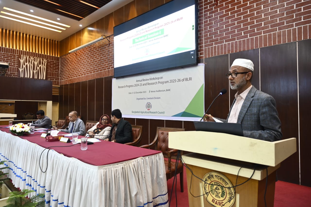 প্রাণিসম্পদ বিভাগ, বিএআরসি’র আয়োজনে নার্সভুক্ত প্রতিষ্ঠান বাংলাদেশ প্রাণিসম্পদ গবেষণা ইনস্টিটিউট (বিএলআরআই) এর ‘Research Progress (2024-25) and Research Program (2025-26) of BLRI’ শীর্ষক দু’দিনব্যাপী বার্ষিক পর্যালোচনা কর্মশালা