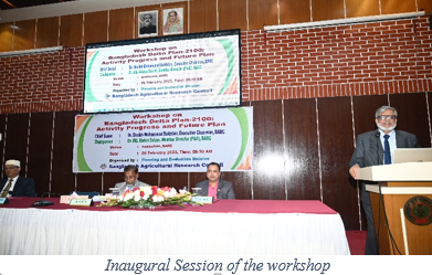 A day-long workshop on Bangladesh Delta Plan 2100 was held on 06 February 2023 at Bangladesh Agricultural Research Council (BARC), Dhaka. Dr. S M Bokhtiar, Executive Chairman, BARC was present as chief guest. Dr. Md. Abdus Salam, Member Director (Planning and Evaluation), BARC chaired the inaugural session. The welcome address was delivered by Dr. A B M Khaldun, Principal Scientific Officer (Planning and Evaluation), BARC. The chief guest Dr. S M Bokhtiar, Executive Chairman, BARC highlighted the implementation of Delta plan-2100 in Bangladesh. He mentioned that Bangabandhu Sheikh Mujibur Rahman is the architect of modern agriculture. Effective implementation of the Delta Plan will eliminate extreme poverty, create more jobs and sustain GDP growth above 8% until 2041. Bangladesh Government approved Bangladesh Delta Plan 2100 (BDP 2100) on 04 September 2018, with the aspiration of achieving a safe, climate resilient and prosperous Delta by 2100. He also mentioned that 'BDP 2100 is the plan for moving Bangladesh forward towards the end of the 21st Century. Efforts have been made to formulate BDP 2100 exactly in the same way we want to build Bangladesh in the coming years of this century. As such he opined the workshop as an appropriate and timely attempt for the rational development of the sector and thanked members of the workshop organizer and participants. Simultaneously, he expected constructive criticism and suggestions from the guests for further improvement of the sector. The chairman of the session welcomed all participants from 16 organizations representing almost all scientists and stakeholders was attended this workshop and discussed making a fruitful plan for the future Delta. In total 90, participants from different organizations viz., BARI, BRRI, BINA, BSRI, BJRI, BSTRI, CDB, BFRI, BADC, BARC, DAE, SRDI, DAM, BLRI, and BWMRI attended the workshop.