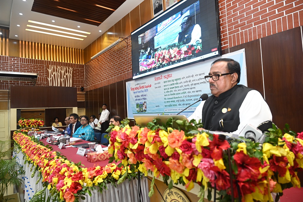 গত ১৬ই অক্টোবর ২০২৩ তারিখে কৃষি মন্ত্রণালয়ের উদ্যোগে বাংলাদেশ কৃষি গবেষণা কাউন্সিলের অডিটোরিয়ামে “বিশ্ব খাদ্য দিবস ২০২৩” উদযাপিত হয়। এ বছর দিবসটির মূল প্রতিপাদ্য বিষয় ছিল “পানি জীবন, পানিই খাদ্য, কেউ থাকবে না পিছিয়ে”। এই অনুষ্ঠানে কৃষি মন্ত্রণালয়ের কর্মকর্তা, জাতীয় কৃষি গবেষণা সিষ্টেমের প্রতিষ্ঠান প্রধান, বিজ্ঞানী, বিশ্ববিদ্যালয়ের শিক্ষক, কৃষি সম্প্রসারণ অধিদপ্তর এবং বাংলাদেশ কৃষি উন্নয়ন কর্পোরেশনের কর্মকর্তাবৃন্দ, আন্তর্জাতিক উন্নয়ন সংস্থার প্রতিনিধি এবং প্রিন্ট ও ইলেকট্রনিক মিডিয়ার প্রতিনিধিরা উপস্থিত ছিলেন। এই অনুষ্ঠানের উদ্বোধনী অধিবেশনে সভাপতিত্ব করেন কৃষি মন্ত্রণালয়ের সচিব ওয়াহিদা আক্তার। প্রধান অতিথি হিসেবে উপস্থিত ছিলেন জনাব সাধন চন্দ্র মজুমদার এম.পি., মাননীয় মন্ত্রী, খাদ্য মন্ত্রণালয়। এছাড়াও এই অনুষ্ঠানে বিশেষ অতিথি হিসেবে উপস্থিত ছিলেন মোঃ ইসমাইল হোসেন এনডিসি, সচিব, খাদ্য মন্ত্রণালয়, Mr. Arnoud Hameleers, FAO Representative ad interim in Bangladesh, ডা. রুদাবা খন্দকার, কান্ট্রি ডিরেক্টর, বাংলাদেশ, গ্লোবাল অ্যালায়েন্স ফর ইম্প্রুভড নিউট্রিশন (GAIN), বাংলাদেশ এই অনুষ্ঠানে উপস্থিত ছিলেন। অনুষ্ঠানে স্বাগত বক্তব্য রাখেন কৃষি মন্ত্রণালয়ের অতিরিক্ত সচিব মুহাম্মদ জালাল আহমেদ।